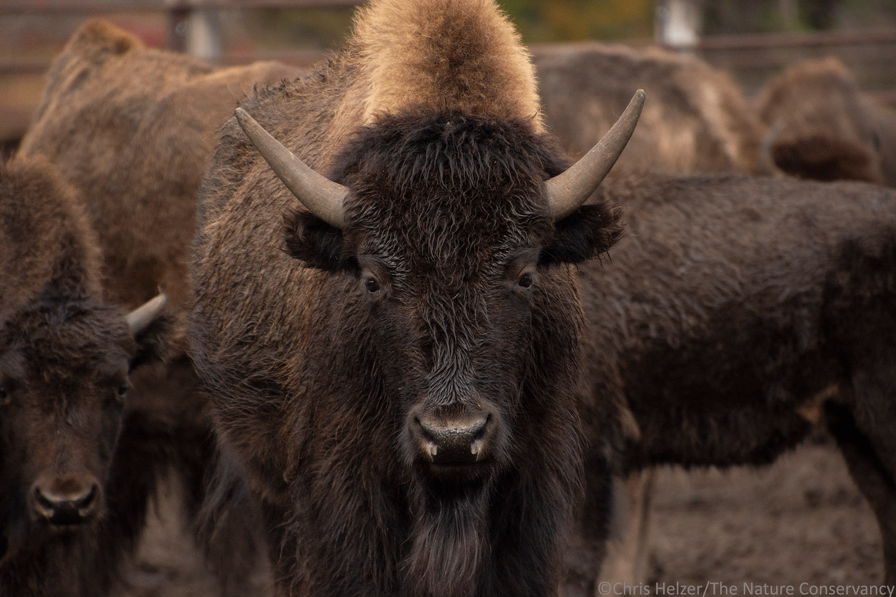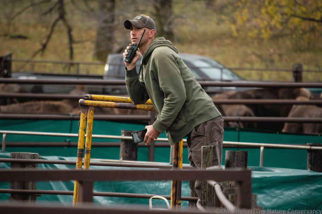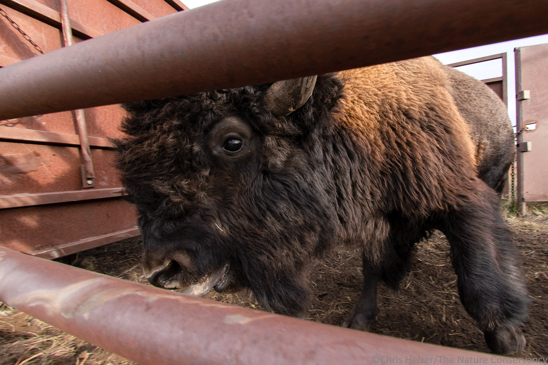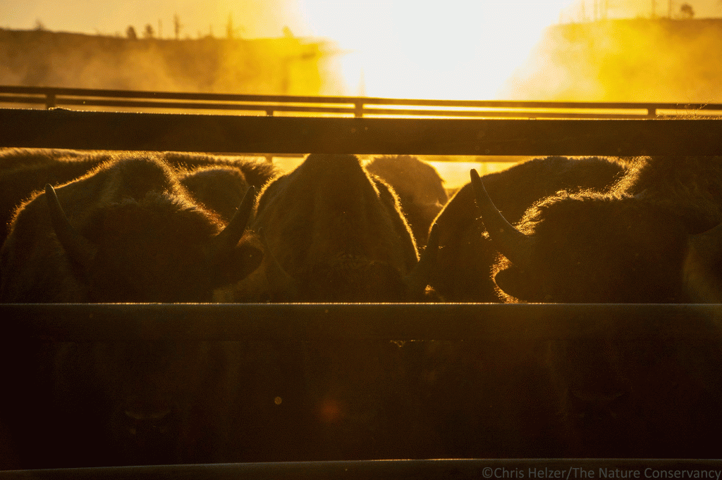 Bison roundups are much quieter than similar events with cattle. Part of that is because the bison, themselves, are quiet. Their soft grunts are much different than the loud bawls of cattle that dominate the atmosphere when they’re being worked. The other reason bison roundups are quiet, though, is that we take extra measures to avoid stressing the animals. There’s very little shouting, banging, or other noises, making the event almost eerily hushed. We work the bison as quickly as possible, trying to minimize the time they spend in the corrals.