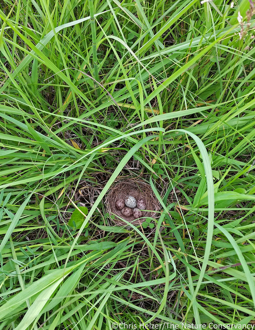 Birds that nest in grasslands tend to rely upon a ‘needle-in-a-haystack’ approach for success.  Most build a simple nest, either on the ground, or suspended not far from the ground in a clump of grass or wildflowers.  They then rely upon the camouflage of both their nests and themselves to escape predation by a range of animals or the sneaky brood parasitism of brown-headed cowbirds hoping to dump their own eggs in someone else’s nest.