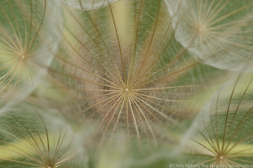 When I find a goatsbeard seed head, my inclination is to stick my macro lens right into it. The fuzzy/fluffy appendages to the seed (the pappuses) capture light in an amazing way and the patterns created by a mass of them are hard to pass up. I have way too many abstract close-up images of goatsbeard, but every seed head is a little different and I keep finding new angles I like! Here is a very small sample of photos from recent years.