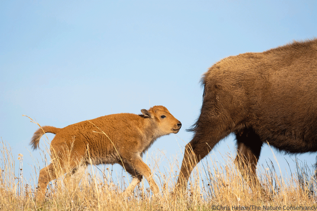 Bison calf and cow at the Niobrara Valley Preserve. April 29, 2021. Nikon 18-300mm lens @300mm. ISO 320, f/6.3, 1/1600 sec.