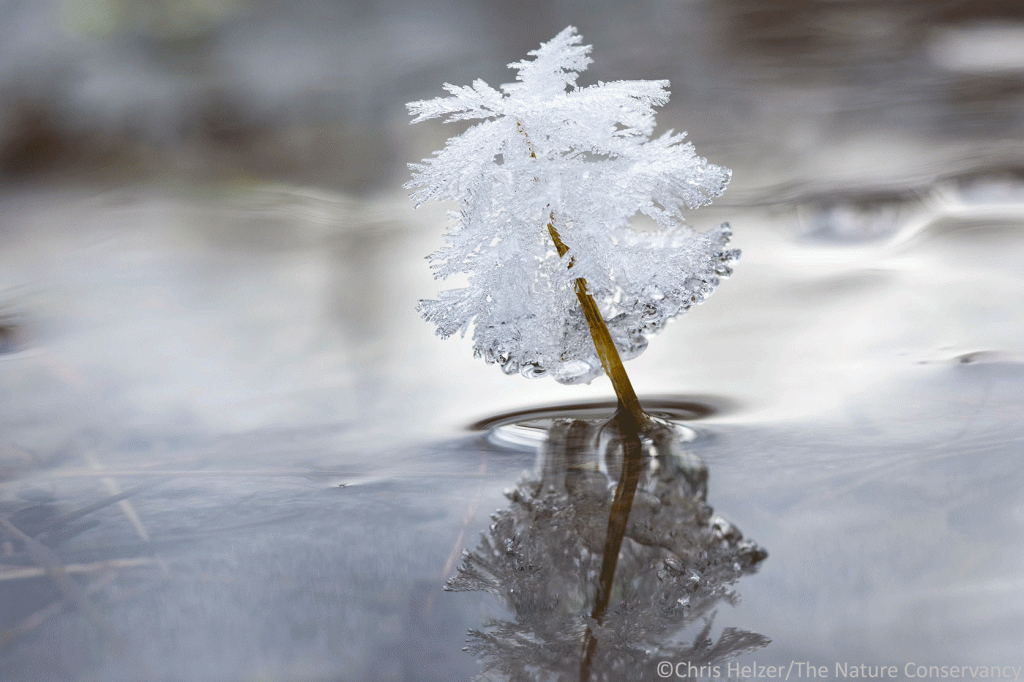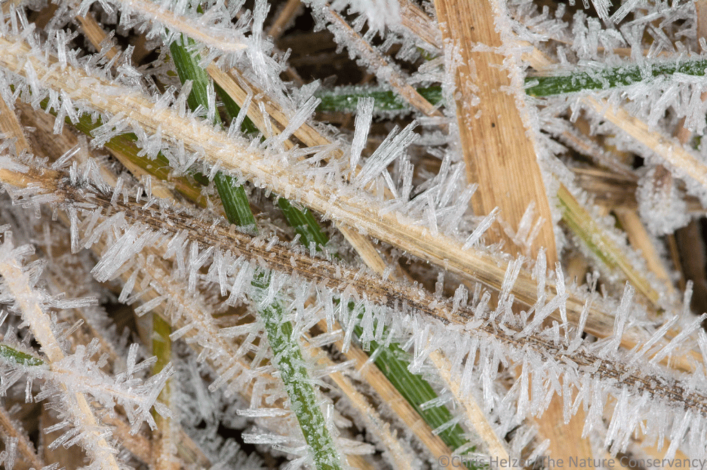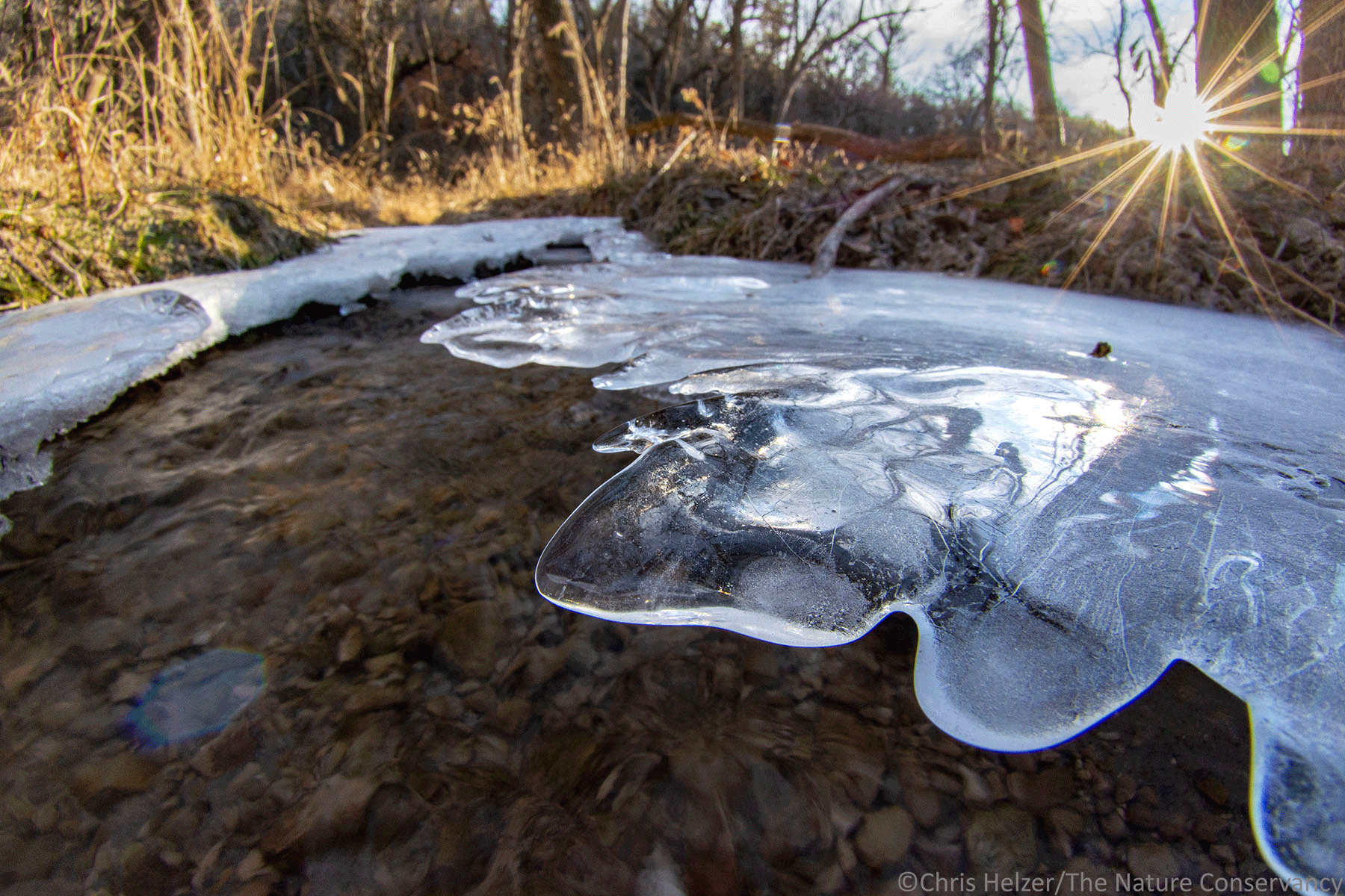 Anyway, today’s post… At the very end of 2021, Kim and I spent a few quiet and blissfully isolated days at the Niobrara Valley Preserve. While there, I ventured out multiple times with my camera, mostly along the edges of the Niobrara River and some small tributary streams. Before I could share photos from that trip, I got excited about ice bubbles on the restored wetland at the Platte River Prairies and shared photos of those instead. As a result, today’s post has photos from several weeks ago. It’s a hodge podge of ice and frost images. I’m sorry they’re not more blurry. I hope you enjoy them anyway.