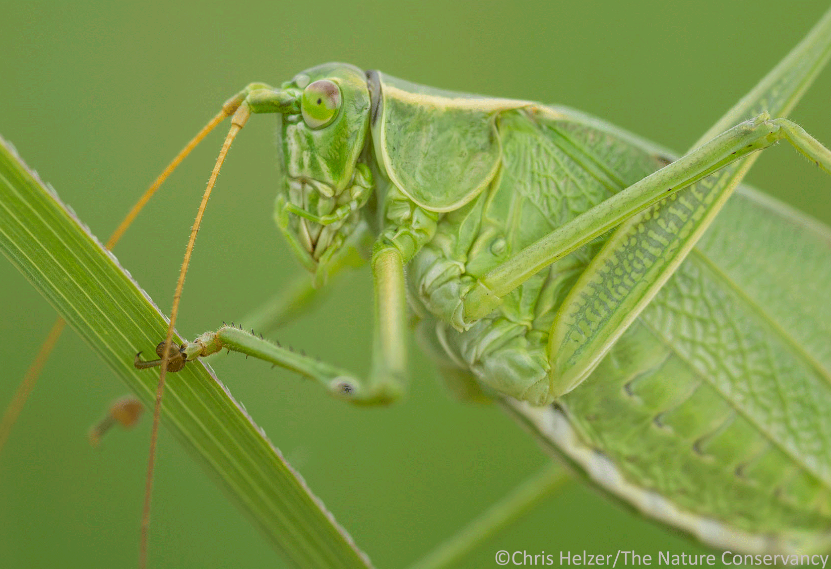 Grasshoppers and katydids provide abundant and nutritious food to many birds and other animals. That works out great for those other animals, but if you’re a grasshopper or katydid, it behooves you to not stand out in a crowd (or a prairie). There are countless examples of great camouflage in the insect world, but I’ve always particularly appreciated the evolved ability of orthopterans to blend into the background. Of course, that sometimes makes photography a challenge, but not in a bad way.