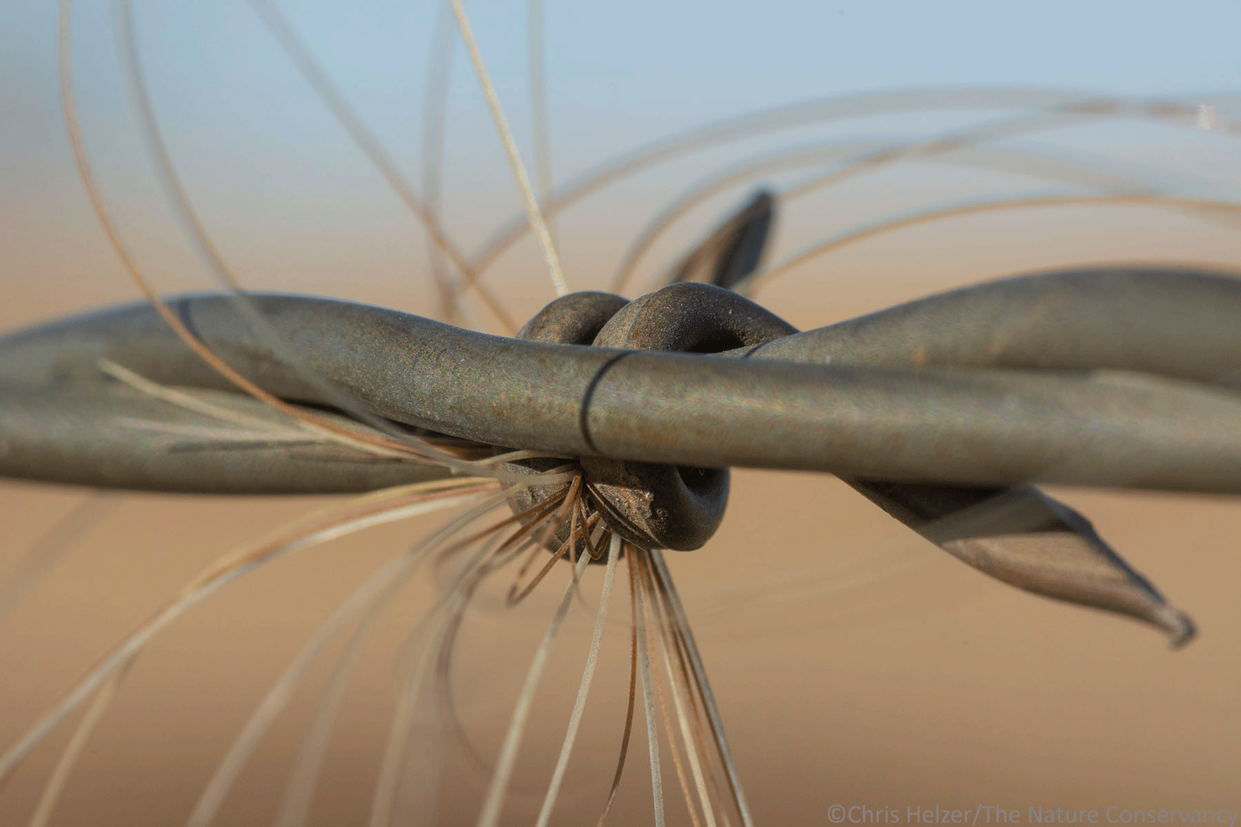 Cow hair in barbed wire fence. Nikon 105mm macro lens. ISO 400, f/22, 1/200 sec.
