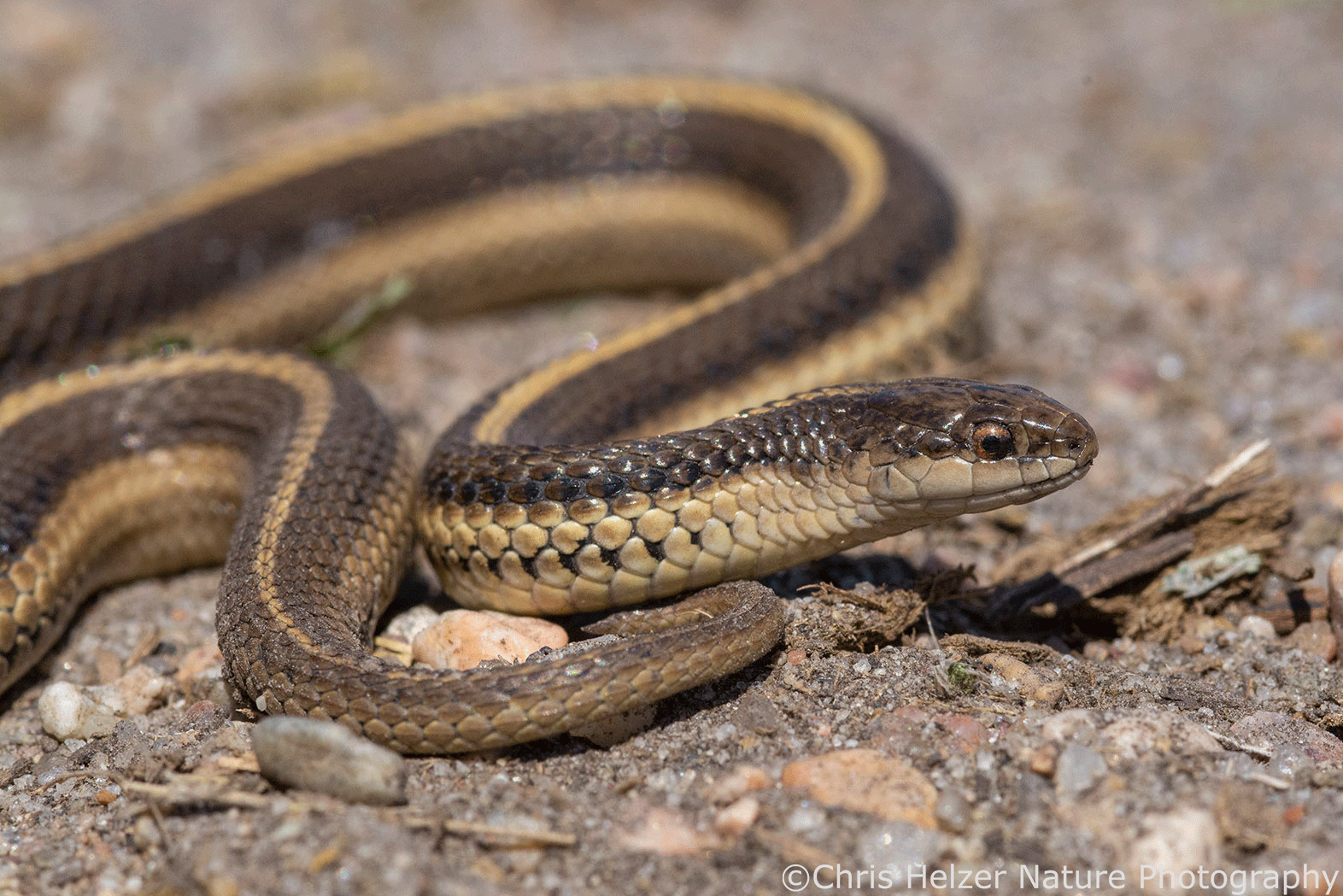 What is a better name for the lined snake in the above photo?