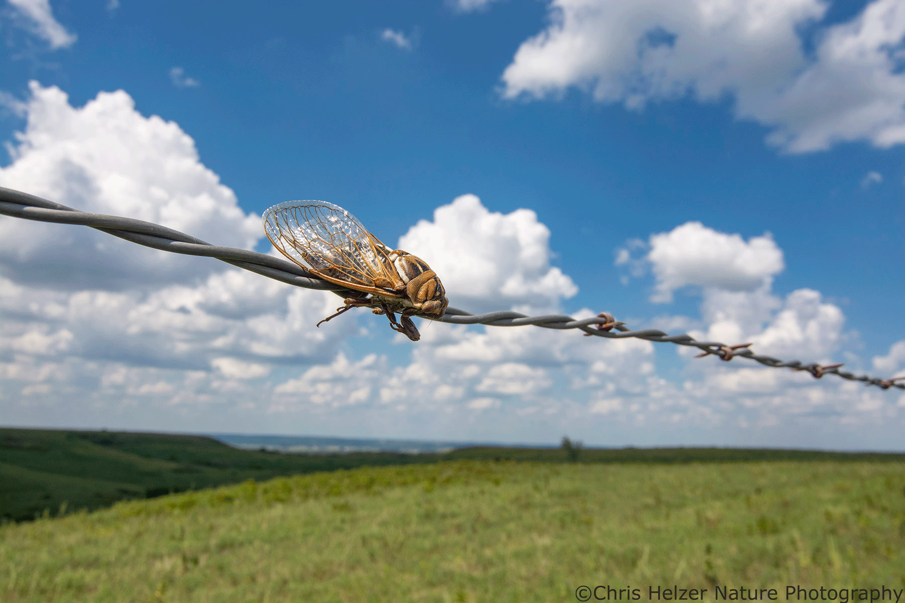 What is the most logical explanation for why this dead cicada is stuck to this barbed wire fence?