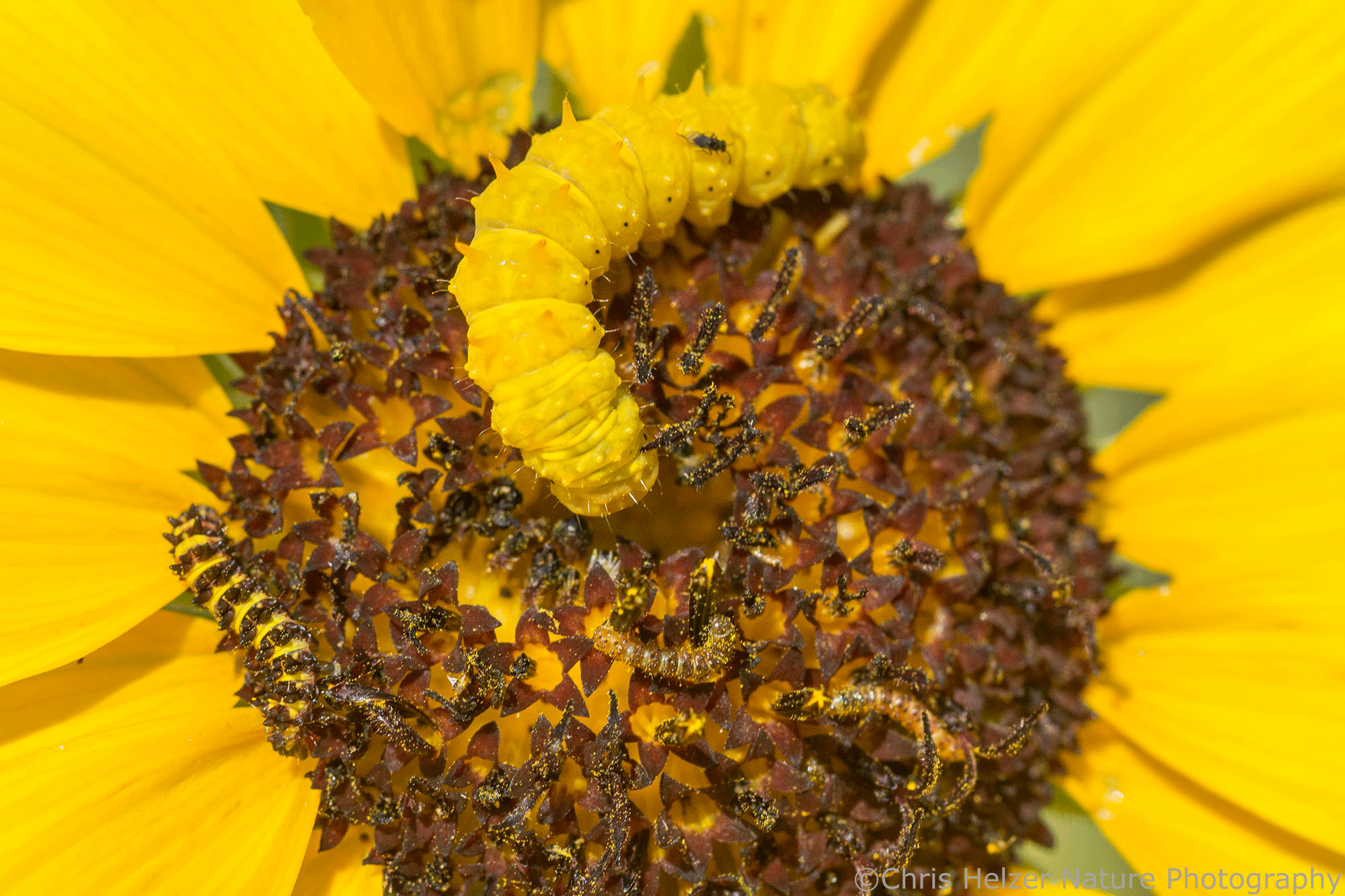 Caterpillars and similar-looking larvae of flies, beetles, and other insects are also commonly-found feeding on flowers. As with beetles and grasshoppers, the result can be pretty negative for individual flowers, but – again – the sacrifices made by those plants help support the broader ecosystem. Caterpillars are another huge food source for other animals and the vast majority end up as food rather than moths, butterflies, or other adult insects. They might as well enjoy a good meal while they can, right? I’ll also admit my personal bias here, since my favorite insect in the world is a little flower-eating caterpillar.