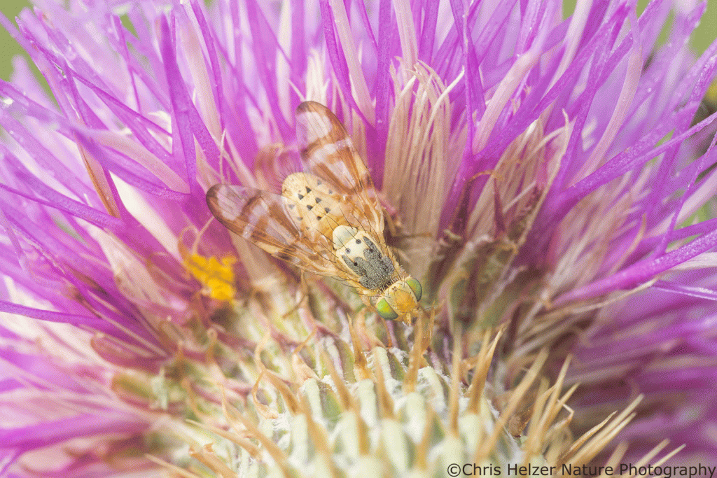More commonly, insects laying their eggs in flowers because that flower will provide both their home and their food source once they hatch. Some of those larvae eat parts of the flower itself, but many feed on the developing seeds, taking advantage of those highly concentrated packets of nutrition. If you peel open the head of a thistle or sunflower after it has stopped actively blooming, you’ll often find a few tiny ‘grubs’ chewing on the seeds within.