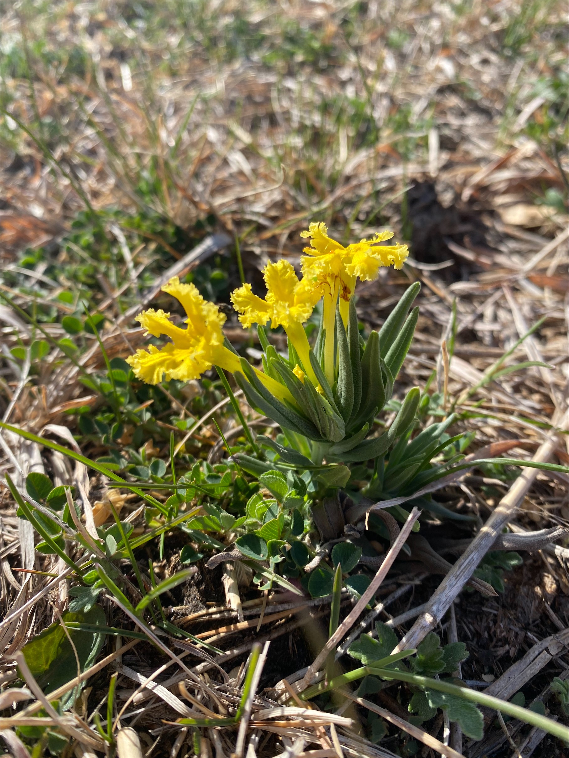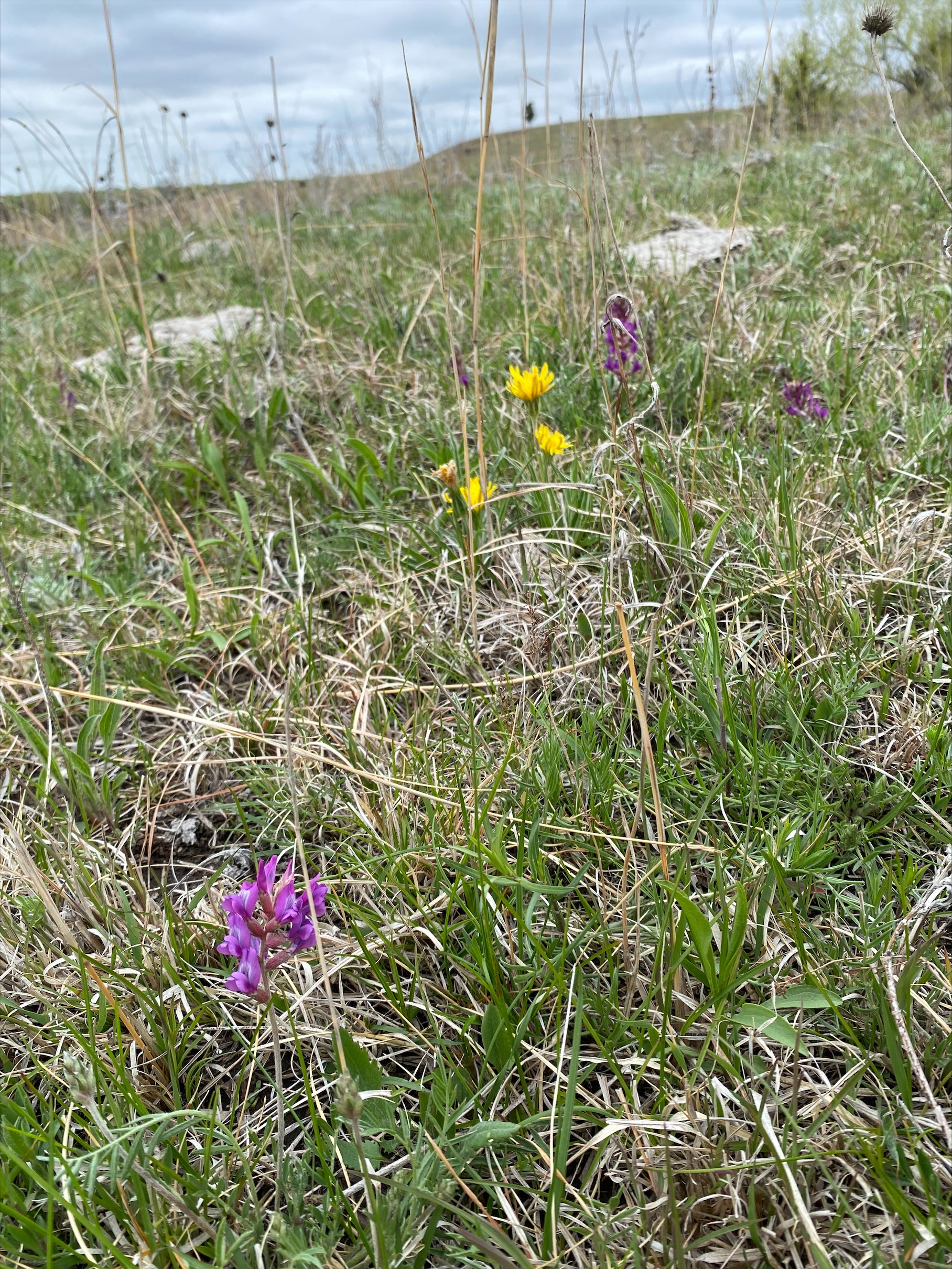 All that is to say that after a few of the much-needed rains we’ve gotten this spring, I was surprised by my distaste upon seeing the invasive smooth brome (Bromus inermis) grass spreading across the landscape around the Platte River Prairies. I’ve internalized the Leopold-like perspective more than I thought! At a glance, it’s rather discouraging, but (as Chris will be the first to tell you) it’s not as bad as it looks. Smooth brome is a cool-season grass (C3), which means its photosynthetic pathway is adapted for growth in cooler environments, and that’s why we see it growing vigorously now before summer hits with full force. And if you’re able to take the time to walk around a site, you’ll see there’s plenty of other things growing too. At the Platte River Prairies some native grasses have also gotten their start, including cool season species junegrass (Koeleria macrantha) and western wheatgrass (Pascopyrum smithii), and there’s even a little vegetative growth of warm-season species prairie cordgrass (Spartina pectinata). Walking around some of our Platte River Prairies sites (and Gjerloff Prairie by Aurora), I’ve seen some native forbs too, both early-flowering species and some that are still basal (just leaves, no flowers)—see my photos for more about the wildflowers!