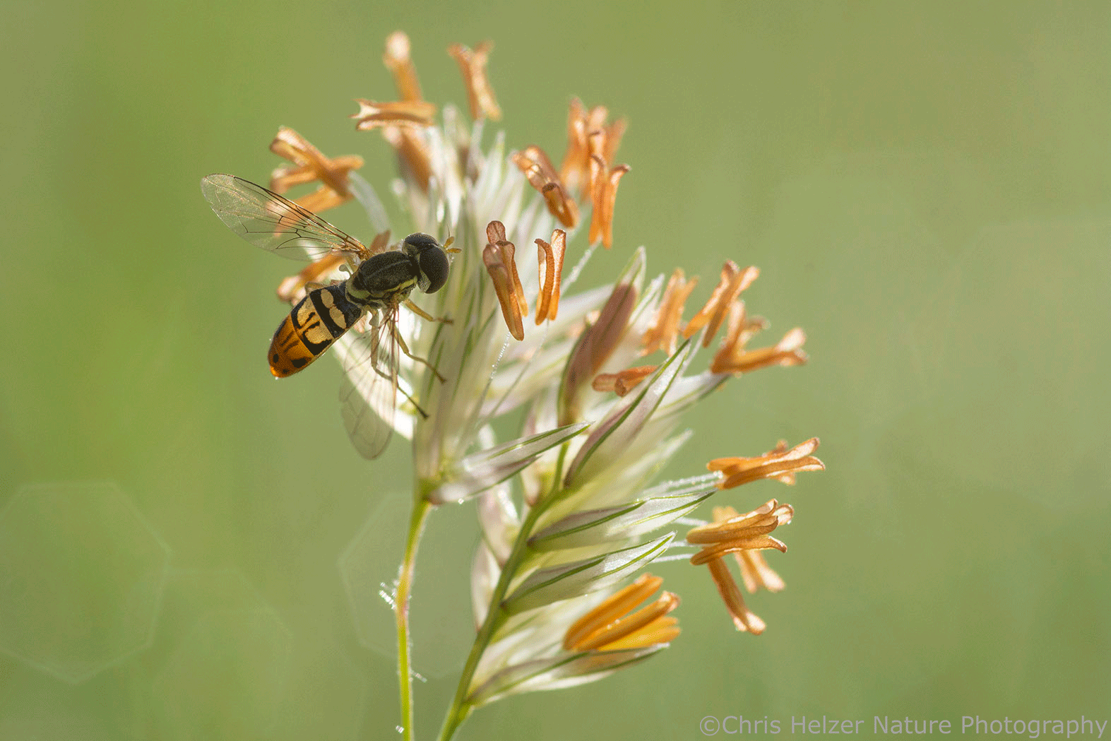I’m not sure if it was related to the relative scarcity of wildflower blossoms, but I enjoyed a pleasant quarter of an hour lying in a patch of buffalo grass (not one of the 6 planted species!) watching flies and bees feed on grass pollen. I’d love to know how the nutritional quality of buffalo grass (Buchloe dactyloides) pollen compares to other options for those insects. I see the same kinds of little syrphid flies feeding on grass pollen later in the season too, even when there is an abundance of big wildflowers, which makes me think they might be visiting buffalo grass by choice rather than out of necessity. I’m not sure if the same was true for the little bees I saw.