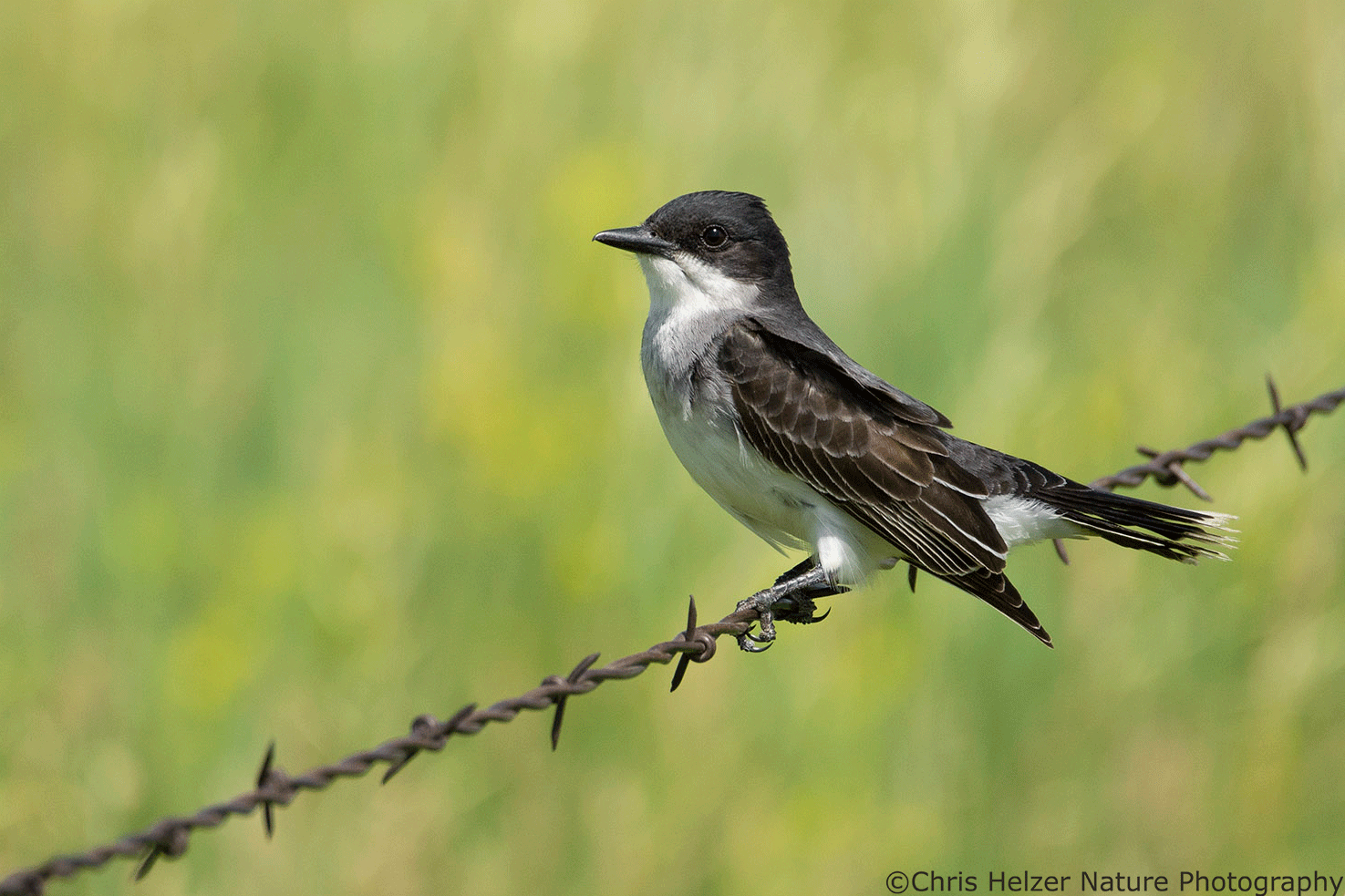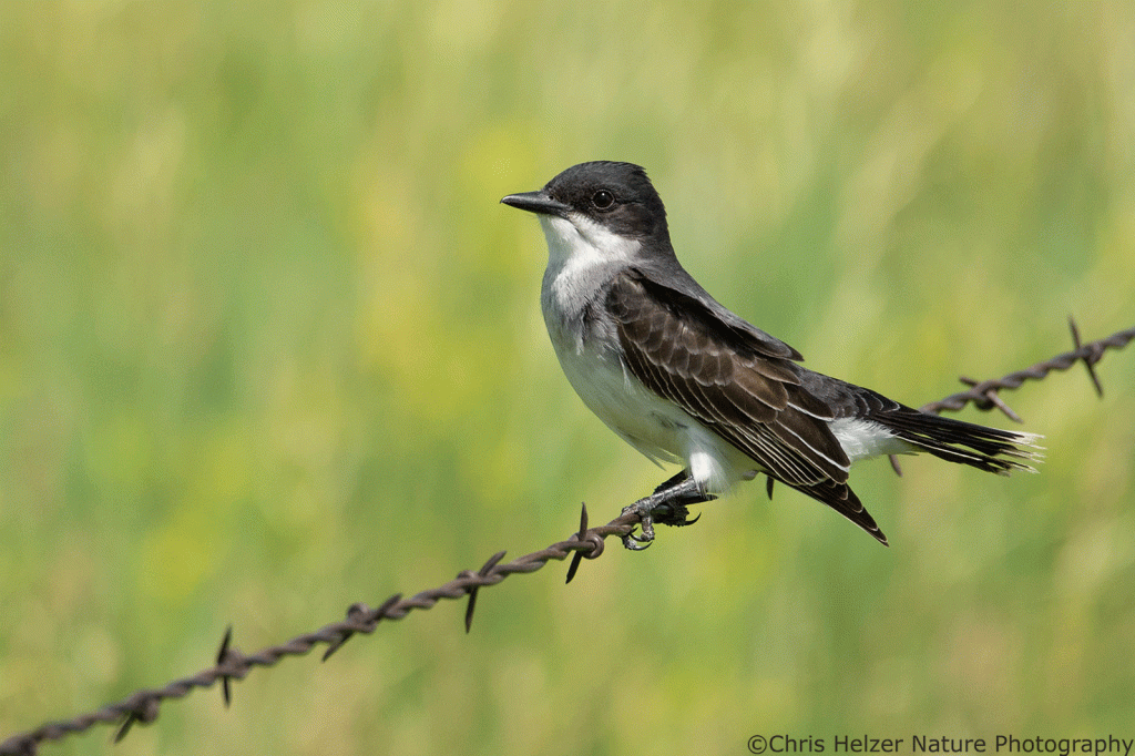 Once the vegetation dried out, I completed my bumble bee survey. Then I chopped a few musk thistles and poison hemlock plants I’d missed last week and prepared to head home. Just as I was ready to hop in the truck, I spotted an eastern kingbird ‘hawking’ insects from the barbed wire fence. It was sitting on the wire and scanning the area and then periodically zipping out to catch something flying by. I wondered if it was distracted enough to let me get a photo of it. I managed to get close enough for a couple decent shots before it took off after a moth (I think?) that led it about 100 yards away. I let it go and drove home feeling good about life.