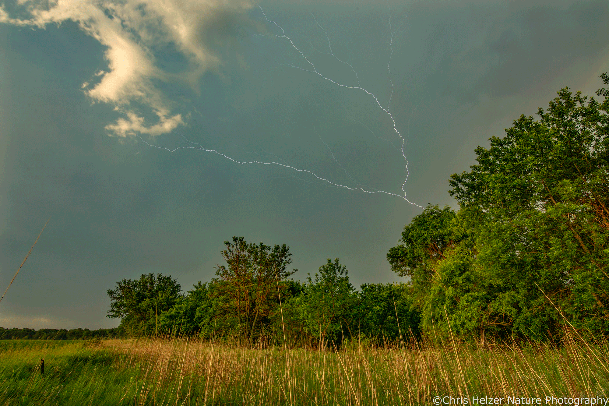 It’s been a stormy May and June around here, with some very damaging hail and winds. A couple weeks ago, a storm rolled through in the morning and I scooted out to Lincoln Creek Prairie to catch its backside as it moved to the southeast. This storm was pretty mild but had great lightning.