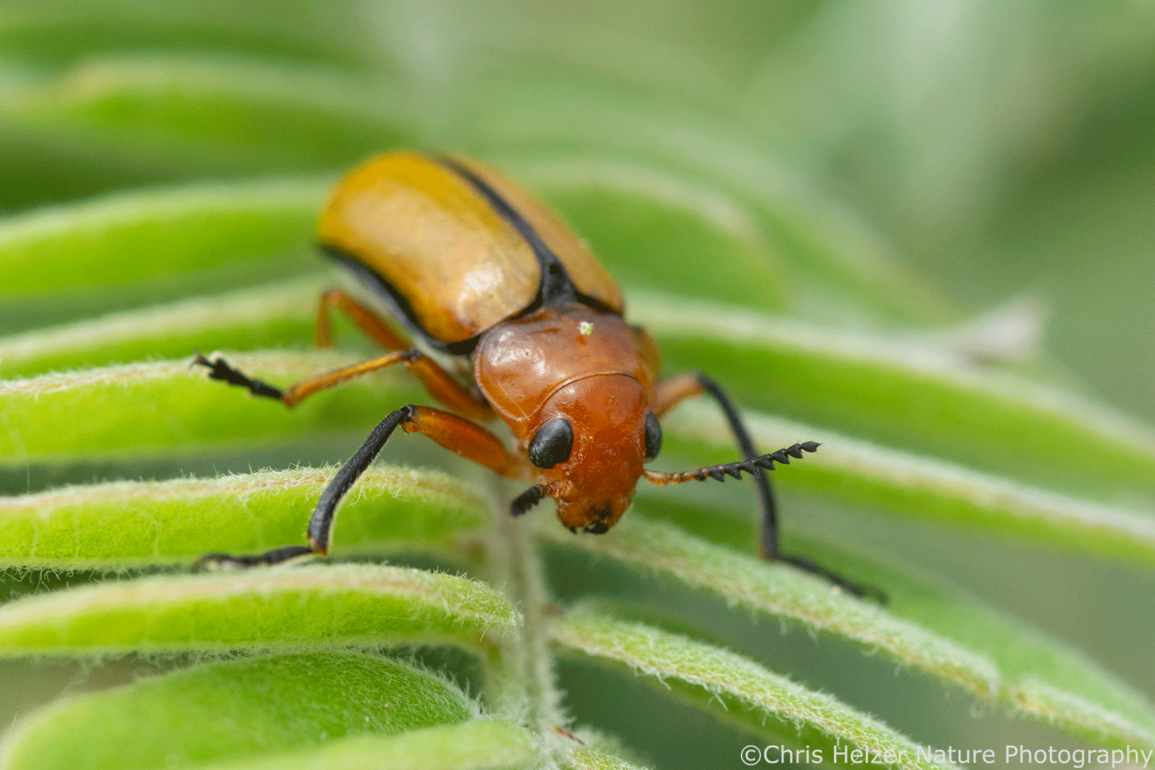 Clay-colored leaf beetle on lead plant. Lincoln Creek Prairie. Nikon 105mm macro lens. ISO 800, f/14, 1/320 sec.