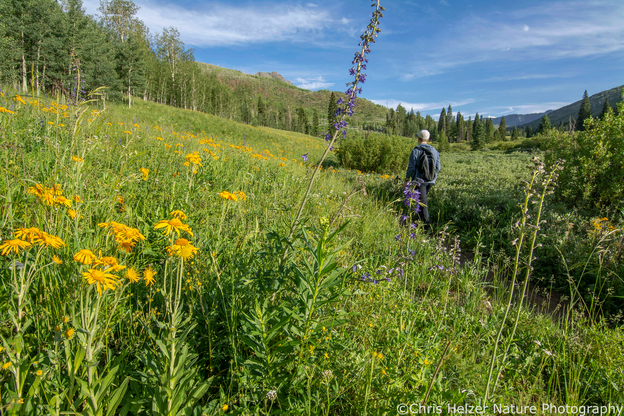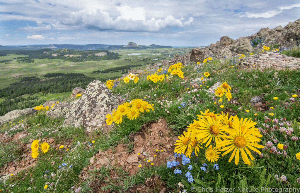 As a prairie guy, when I travel to the mountains, I’m always drawn to alpine and subalpine meadows. Those high elevation prairies are spectacular, in part, because their short growing season forces everything to happen at once – all the flowers and animals have to squeeze a year’s worth of growth, flowering, breeding, and feeding into a small period of time. Of course, because they’re on mountain tops, those meadows are also surrounded by awe-inspiring views.