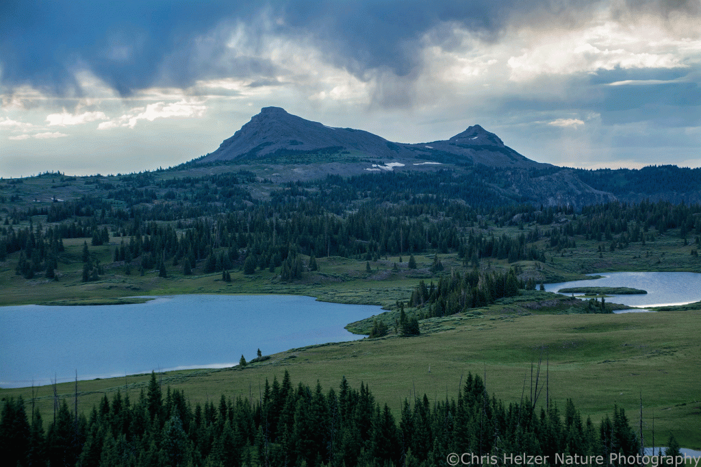 The same lake and clouds, with Trapper’s Peak more prominent in the background.