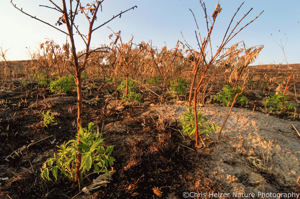 Our recent experience in Nebraska has been less encouraging. The 2012 wildfire at the Niobrara Valley Preserve (during extreme drought) didn’t seem to check smooth sumac at all, and sped it up where the fire took out junipers and pines and shrubs quickly filled those spaces. Summer fires we conducted in 2021 in the Platte River Prairies knocked dogwood and plum back to the ground, but I haven’t yet found any that didn’t resprout. That doesn’t mean the fires weren’t effective, just that a single event isn’t going to solve problems for us. It’s interesting to ponder whether there are latitudinal differences in how summer fire interacts with shrubs or if different results come from other variations between sites. There’s a lot still to learn here, and it will probably take combinations of treatments (fire plus other) to effectively suppress woody invasions.