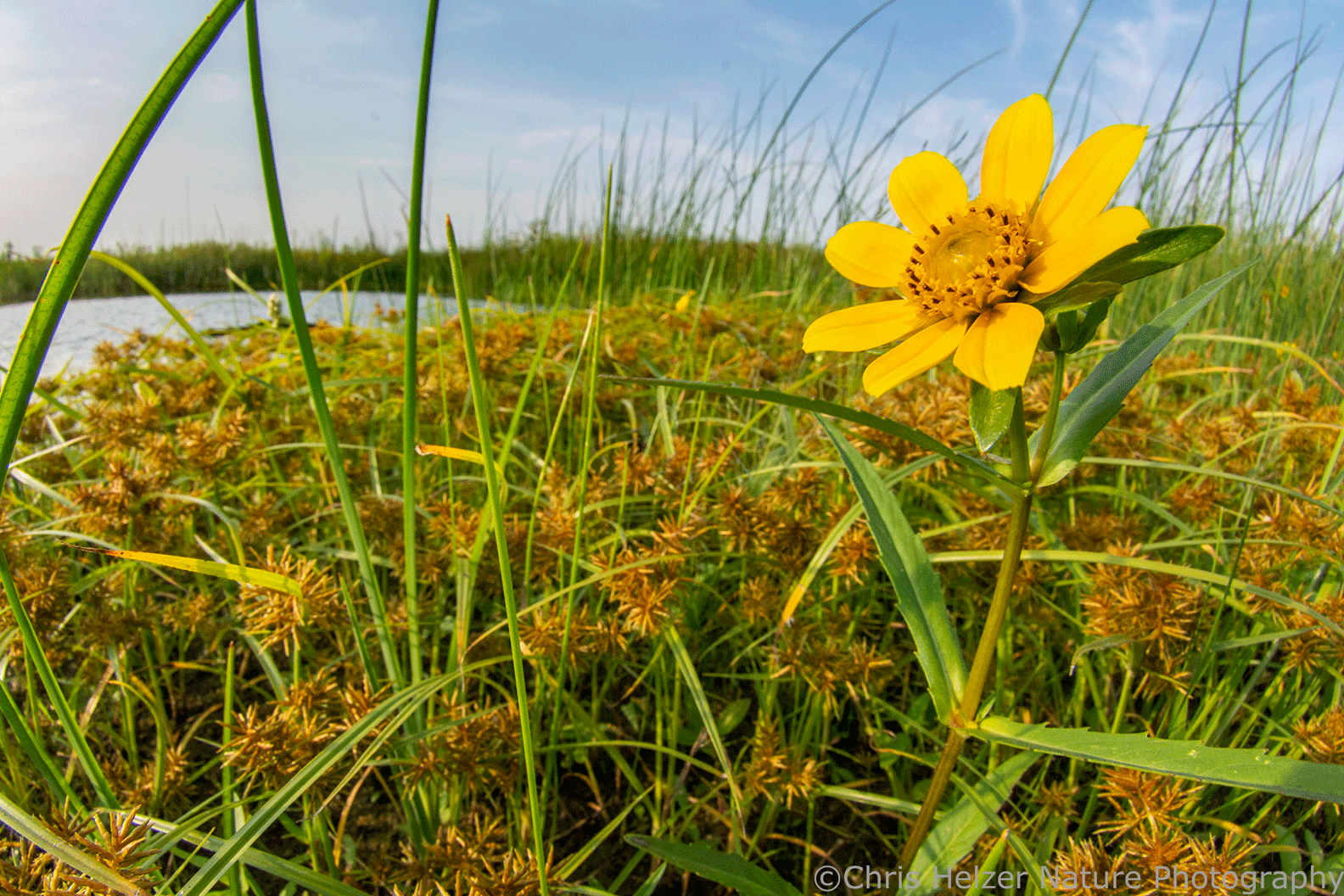 Nut sedges (Cyperus sp.) and nodding beggarticks (Bidens cernua). Nikon 10.5mm fish eye lens. ISO 640, f/18, 1/125 sec.