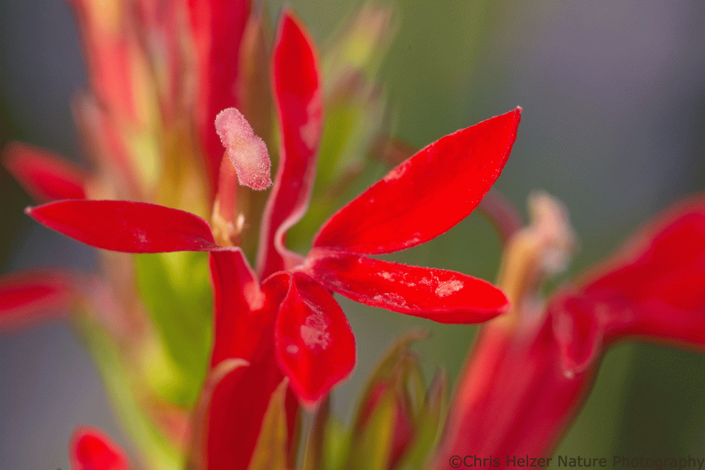 Cardinal flower. Nikon 105mm macro lens. ISO 640, f/14, 1/60 sec.