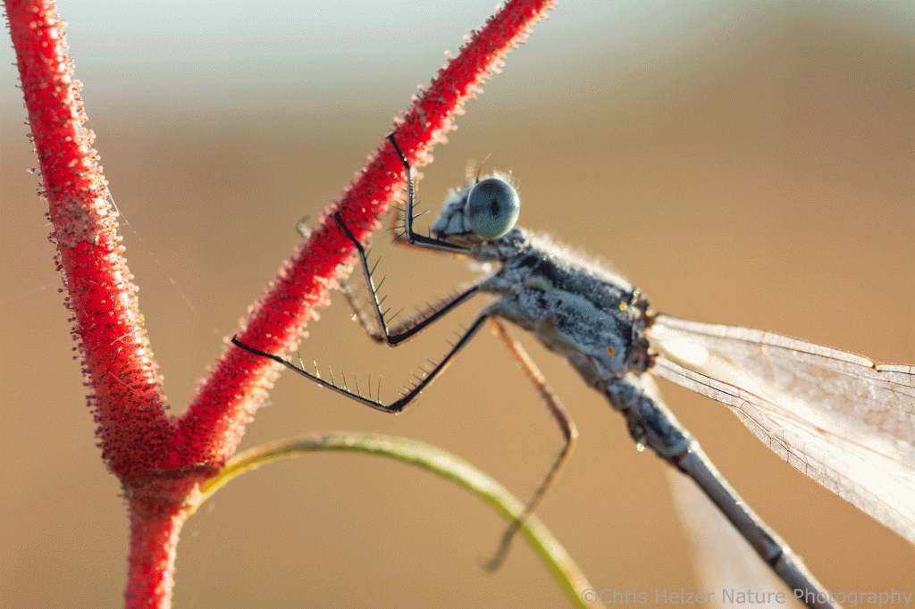 Another tip for insect photography is to get the camera down to the level of the critter, rather than staying above it. It usually creates a much more intimate look at the animal. Camera height can also have a big impact on the background behind the subject too. Sometimes getting below the insect means background vegetation is further away (or thinner), giving you a cleaner background. Or you can even include some of the sky, which can also be nice.