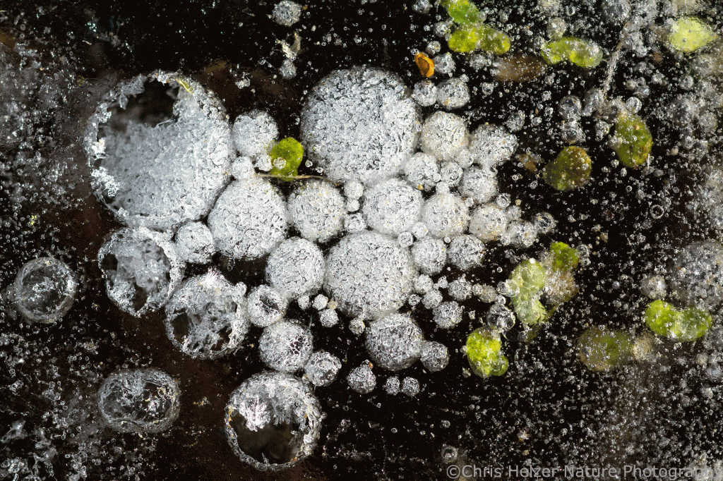 More ice bubbles and algae! Nikon 105mm macro lens. ISO 500, f/16, 1/125 sec.