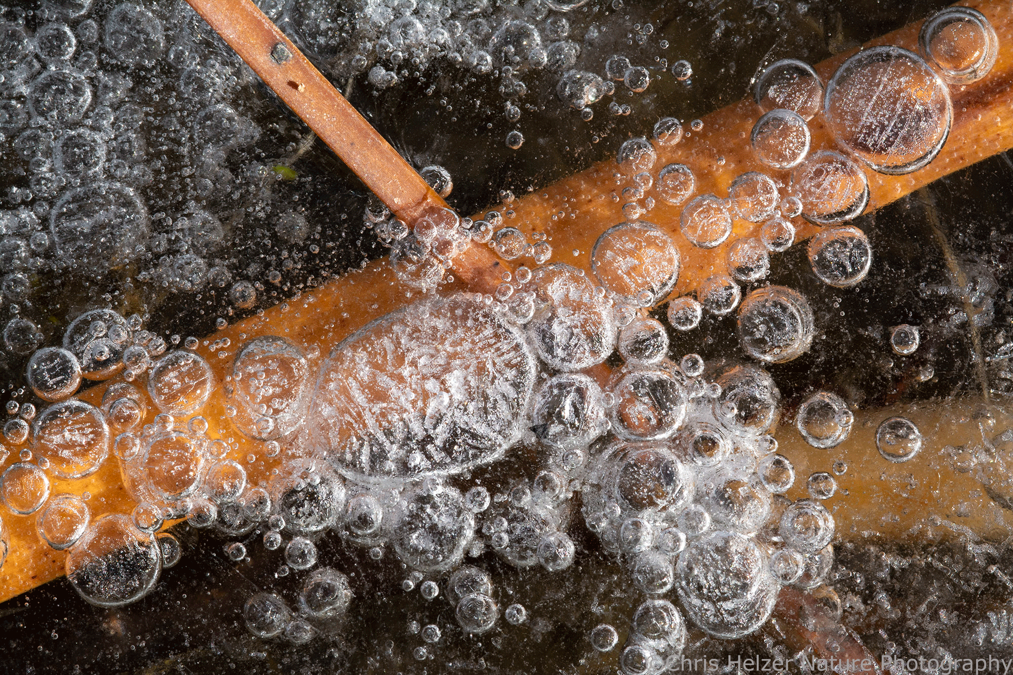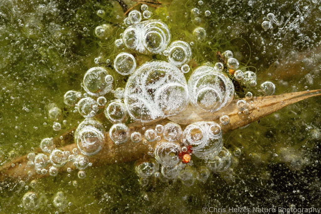 The last ice bubbles for today. Nikon 105mm macro lens. ISO 500, f/20, 1/160 sec.