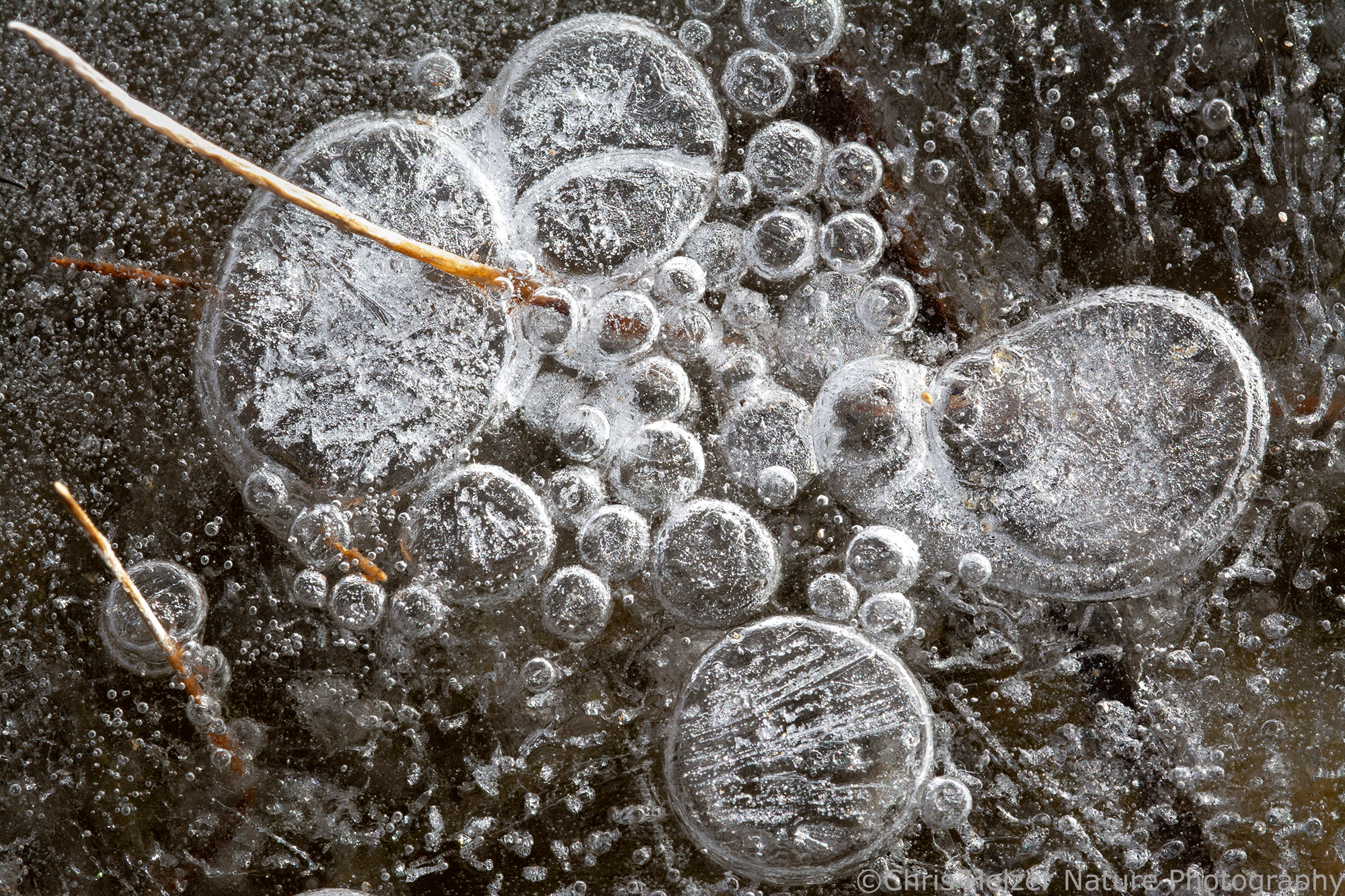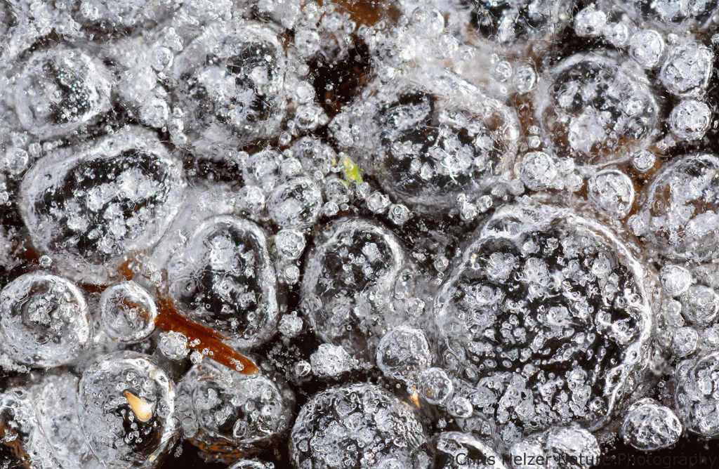Ice bubbles! Nikon 105mm macro lens. ISO 500, f/13, 1/500 sec.