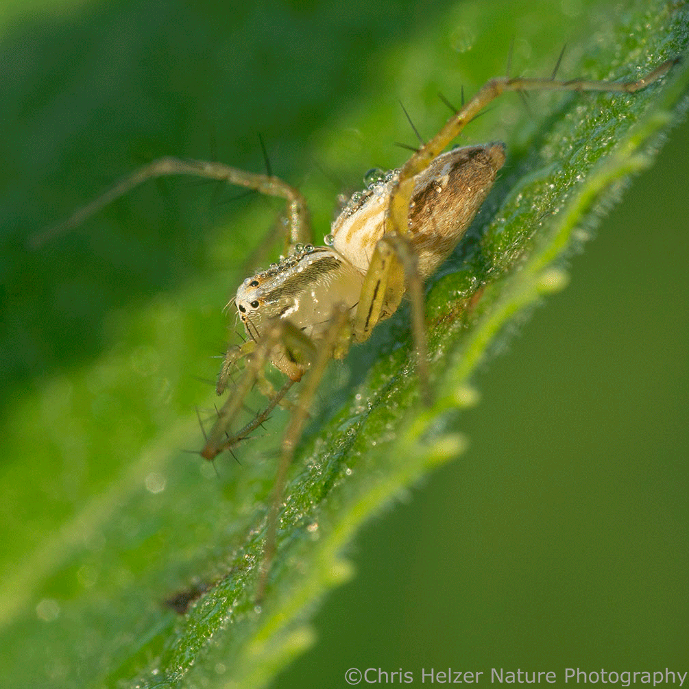 As a special bonus, here is another photo of the same striped lynx spider, but from the other side of the leaf. Isn’t she a beaut?