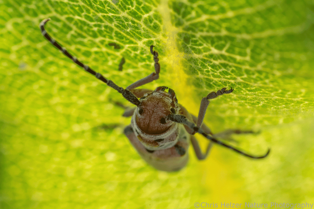 Such a cute and professional close up of the milkweed longhorn beetle’s face. Thanks for elucidating on the species difference!