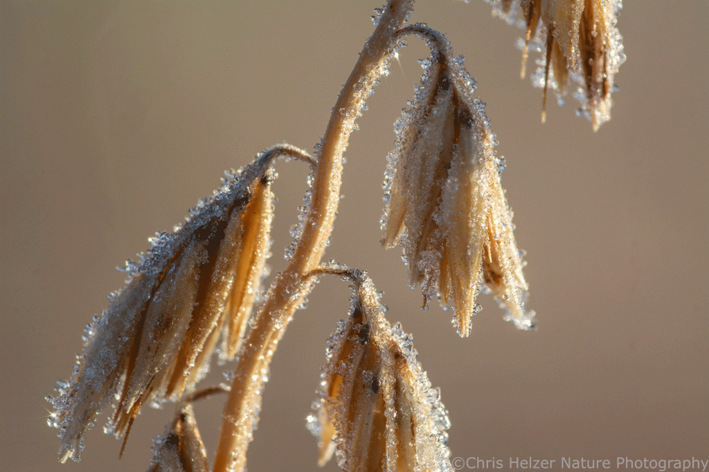 Sideoats grama (Bouteloua curtipendula) and frost. Nikon 105mm macro lens. IS0 500, f/20, 1/500 sec.