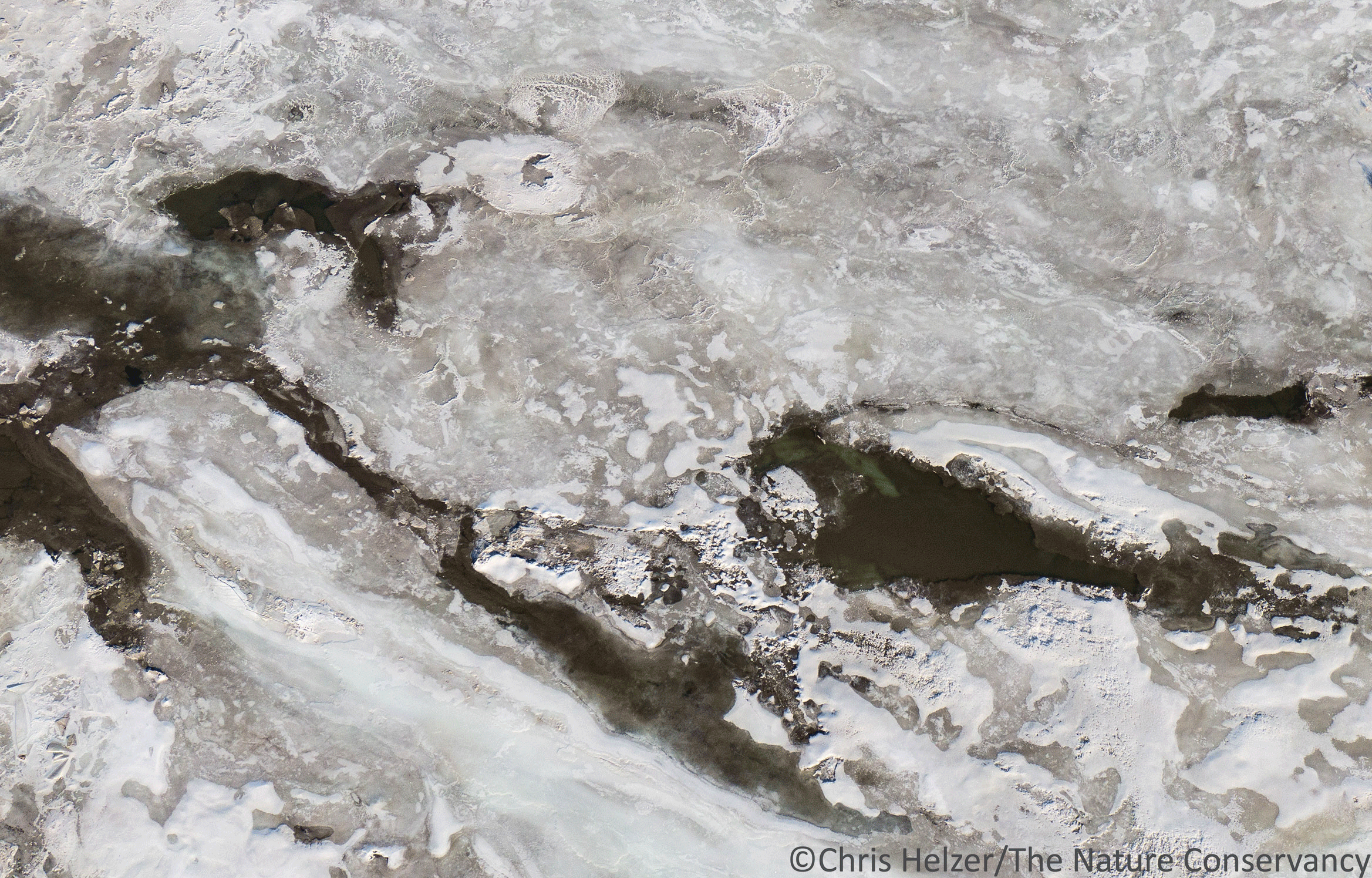 I took a quick break to send the drone into the air. I’d packed it on the 4-wheeler with me when I left the cabin and felt like I should fly it a little to justify bringing it along. Plus, the river had some great patterns of ice, frost, and open water that were worth capturing from above.