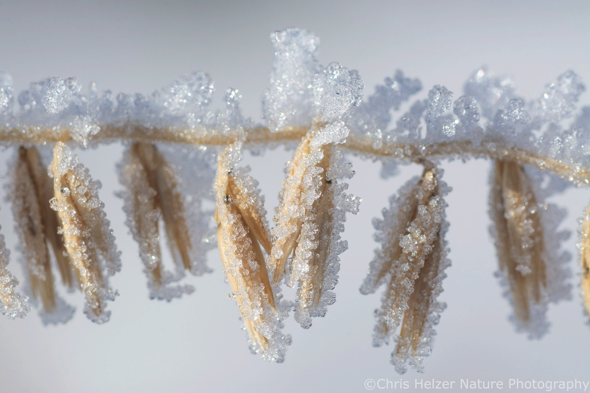 Sideoats grama (Bouteloua curtipendula) and frost. Nikon 105mm macro lens. IS0 500, f/20, 1/500 sec.