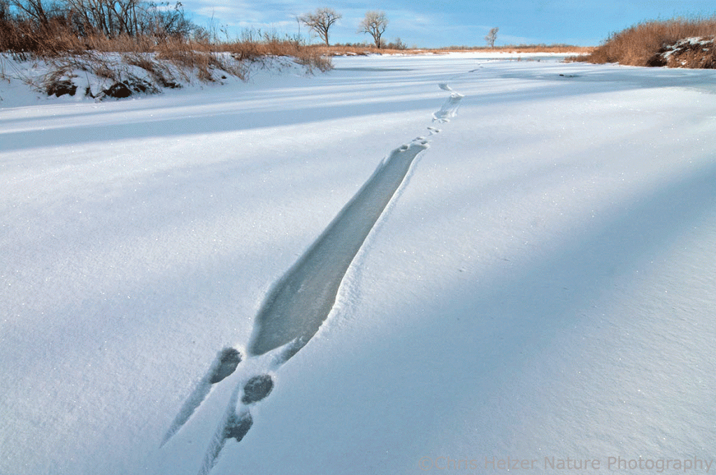 8. …(wiping tears from my eyes)…what a terrific post to start my morning with, thank you for helping me ease into a busy day with a laugh and a smile. I won’t go into what I (have and) have not seen at our preserves, but I will say that capturing their slide prints in the snow is “almost” as cool as seeing them in person. And that’s an awfully nice one you’ve got there (I mostly just find short slides heading into a creek). Thank you, Chris!