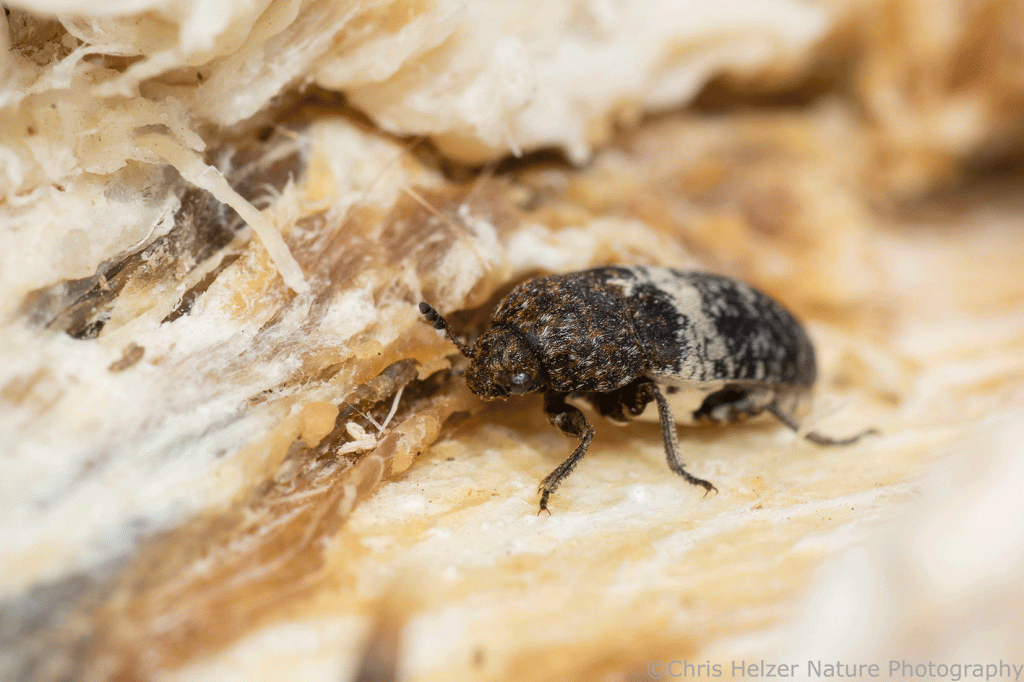 As I inspected the carcass (because that’s what ecologists do, right?), I spotted a few little creatures crawling around on it and started trying to photograph them. The wind wasn’t a factor, which was nice, but the little buggers didn’t hold still very well, which wasn’t. More experienced carrion-inspectors would surely be able to age the carcass based on the species and life stage of the insects I found, but that’s not my expertise. I was just curious and enjoyed seeing what was there.