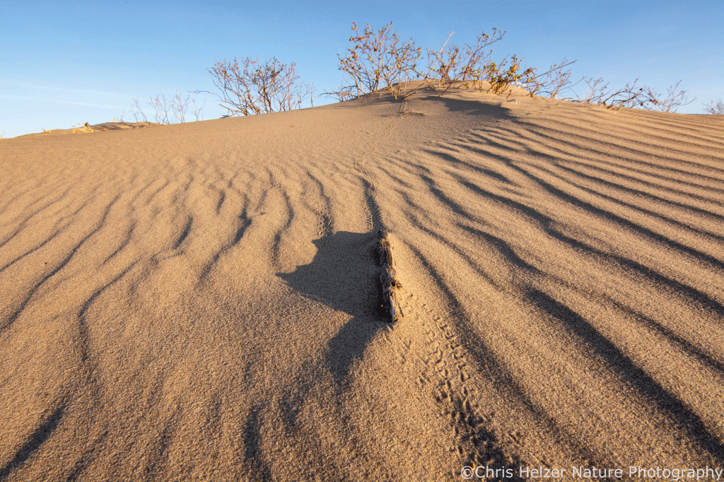 I waited until the bulls grazed their way over the next hill and then started the truck back up and continued my journey. I wasn’t seeing much for flowers, other than lots of sun sedge (Carex heliophila). I stopped and photographed some wind-blown patterns in the sand at a blowout (a bowl-shaped wind-eroded landscape feature) for a while.