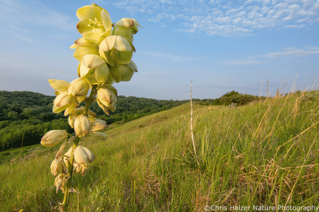 Yucca and Loess Hills prairie. Tokina 11-20mm wide angle lens @13mm. ISO 500, f/14, 1/160 sec.