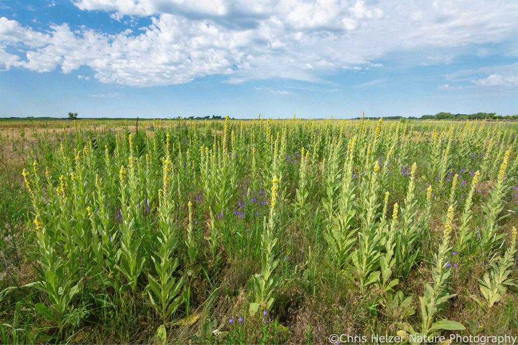 The next photo shows the same site, not far from where the first photo was taken. The second photo is dominated by mullein plants with an understory of annual bromes. If you look closely you can see some native grasses and some ‘weedy’ native wildflowers like hoary vervain and yarrow.