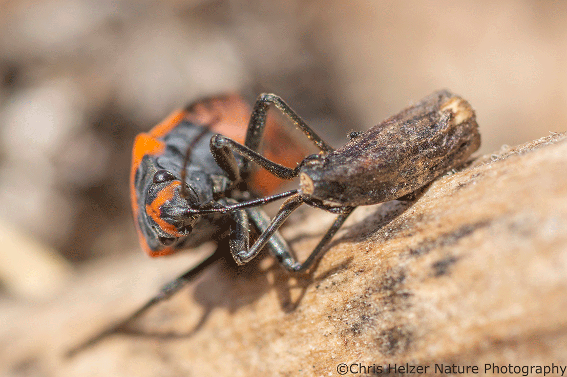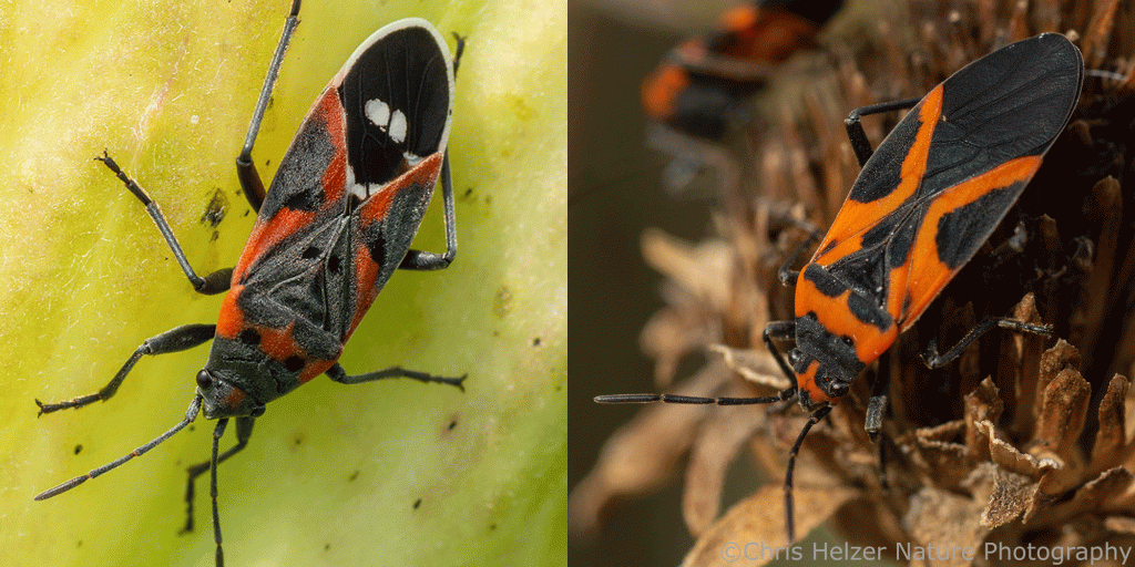 The small milkweed bug, shown below, is a charming little insect that feeds on milkweed plants. It’s called the small milkweed bug because there’s another milkweed bug called the “large milkweed bug” (seriously, who gave these people the responsibility of naming organisms??). The large milkweed bug is in a completely different genus (Oncopeltus) but is at least in the same family as the small milkweed bug and does look sort of like it. But bigger.