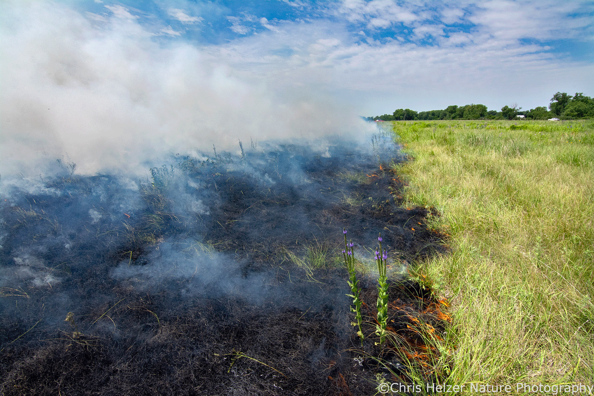 Additionally, one of our objectives at the prairies owned by The Nature Conservancy in Nebraska is to experiment and learn what we can about land management and restoration. We try lots of stewardship tactics, evaluate them, and have them available for others to come look at during our field days, workshops, etc. There’s still a lot to learn about summer fire, so each one is another opportunity to learn.