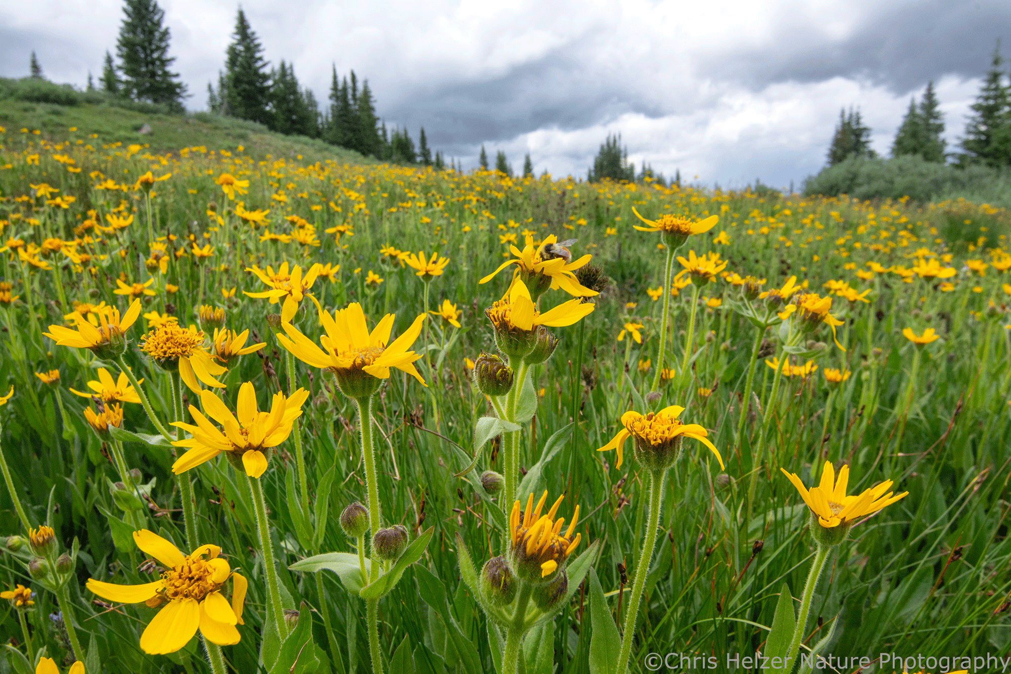 I didn’t see any really big wildlife species, but that didn’t bother me. There were plenty of marmots and pika, along with a fox that played peek-a-boo with me for a while from the top of a ridge. Birds sang all around me, including some I knew and some I didn’t. Most importantly, I saw multitudes of bees, flies, butterflies, spiders, and other invertebrates and had plenty of time to photograph them (in-between thunderstorms).