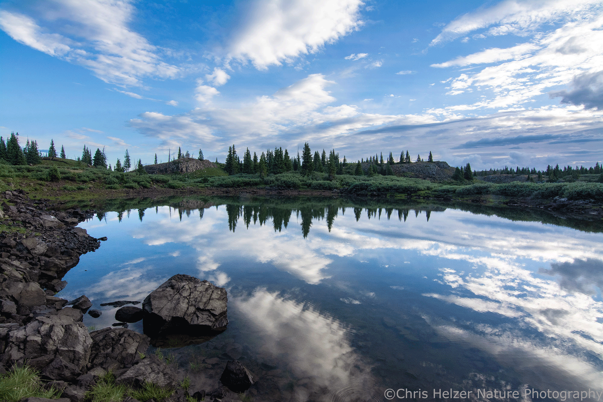 If you’re interested, I started at Stillwater Reservoir and hiked up to the plateau on Bear River Trail. I then followed Chinese Wall trail south for a while before heading off trail to the west toward a few small lakes I’d found on Google Earth that looked like they’d provide a great place to camp. I was right – it was a terrific spot. I camped there two nights and then hiked back out. During the days, I explored the area with my camera, not going too far because of the frequent thunderstorm activity.