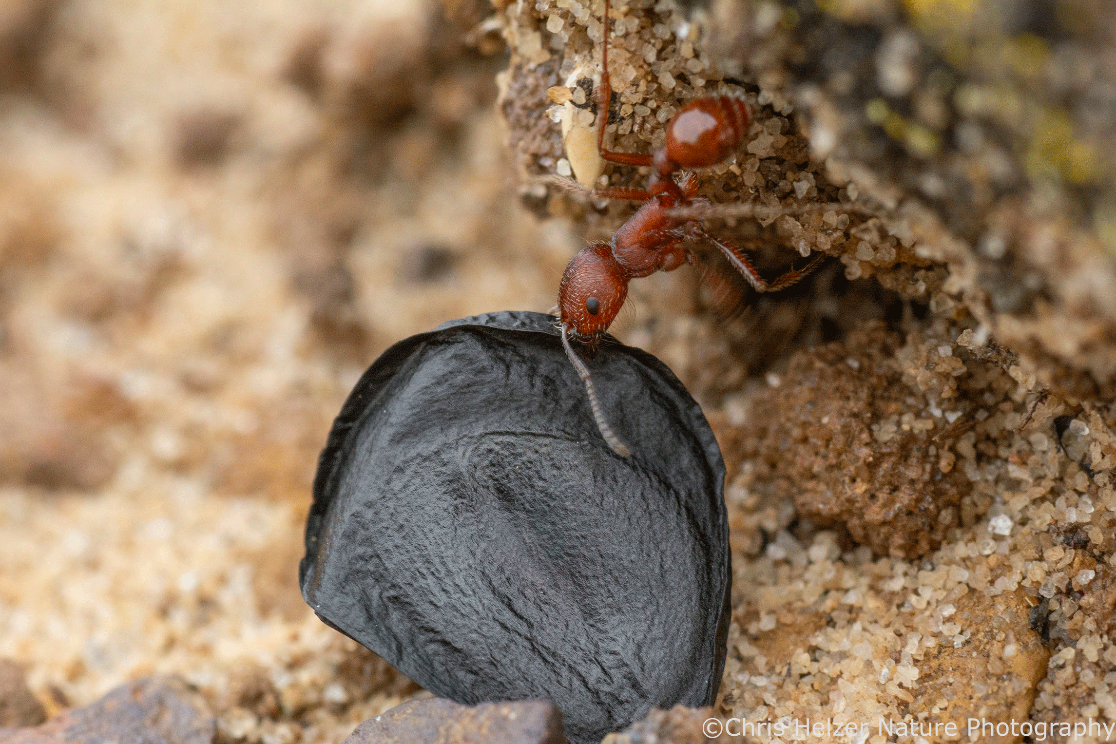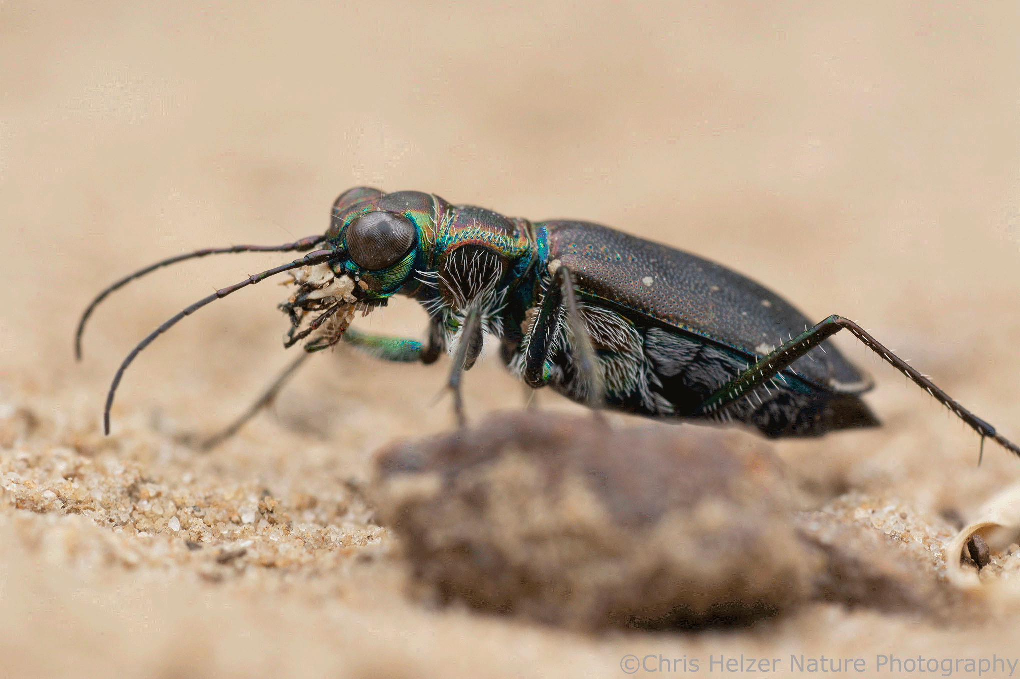 I didn’t wander too far from the aid station because I wanted to be sure I was on duty when Kim came by for ice, water, food, etc. The closest rock outcroppings were just off one of the roads around the lake. That was fine except that I could feel the eyes of drivers on me as I laid prone on the ground, trying to photograph ants, tiger beetles, and other friends. I tried to move enough to show passersby I wasn’t dead, just eccentric.