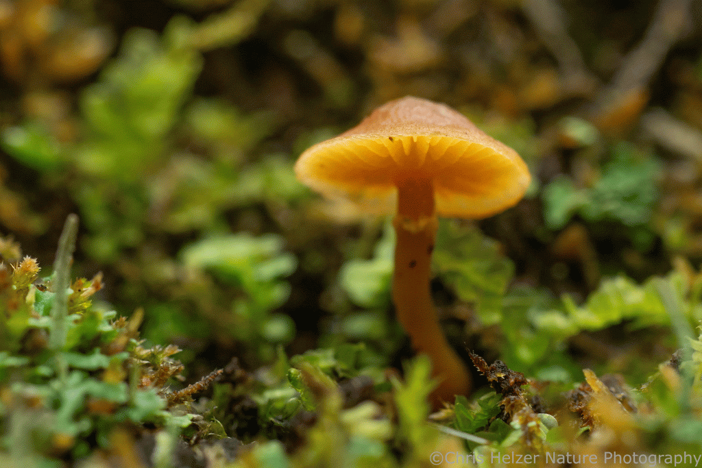 Mushroom and moss. 105mm macro lens. ISO 800, f/16, 1/60 sec.