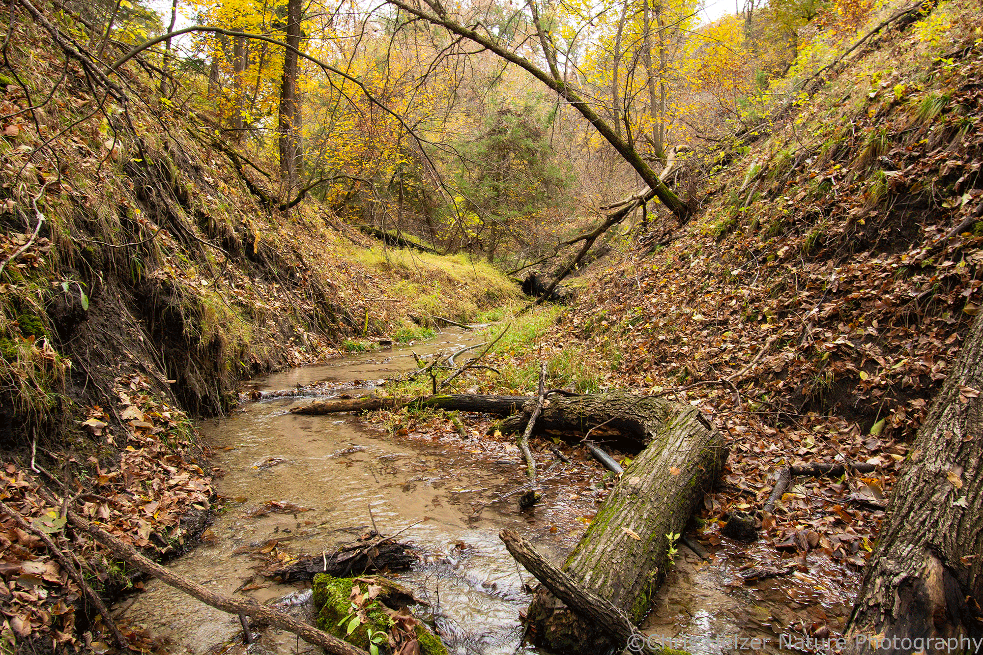 Because the streams come from groundwater and then flow through sandy channels, the water is very clear – an unusual situation in Nebraska. The combination of clear water and autumn leaves always makes these creeks fun to explore in October. Photography along their banks is tricky, though, because they’re shaded by both trees and topography.