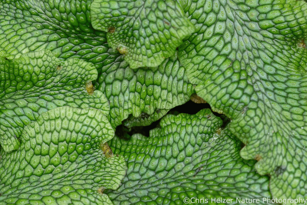 Liverwort! 105mm macro lens. ISO 640, f/16, 1/60 sec.