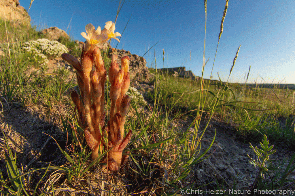 Why is this cancer root plant (Orobanche fasciculata) brown but actively flowering?