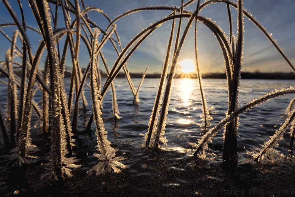 This first set of photos was taken on New Year’s Day at the Platte River Prairies. I visited my favorite wetland restoration (one I spent many years working on) and – as always – it didn’t disappoint. Between frosty and plants, fog, and ice bubbles, there was more than enough to keep me happy on the first morning of 2024.