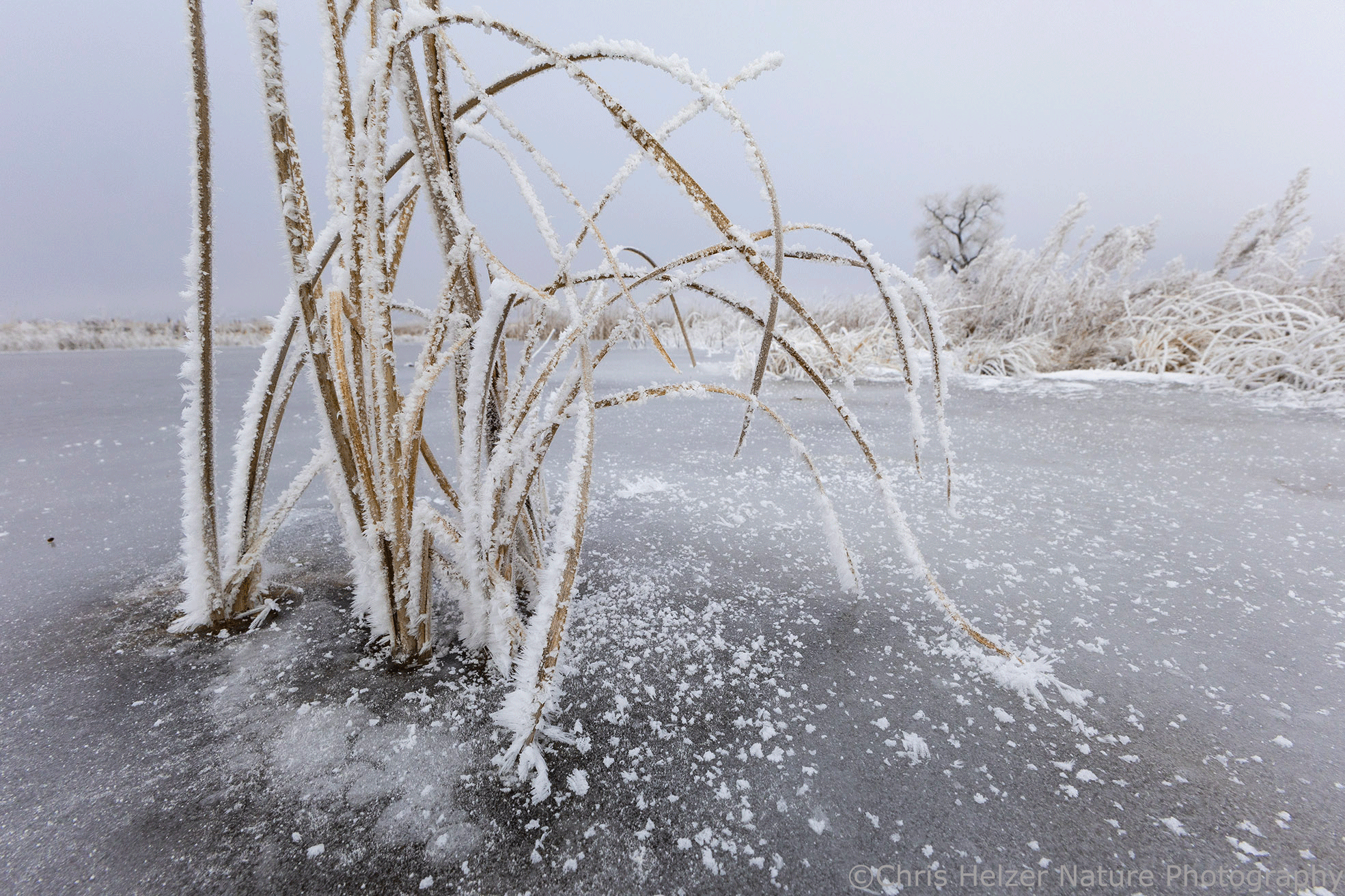 This first set of photos was taken on New Year’s Day at the Platte River Prairies. I visited my favorite wetland restoration (one I spent many years working on) and – as always – it didn’t disappoint. Between frosty and plants, fog, and ice bubbles, there was more than enough to keep me happy on the first morning of 2024.