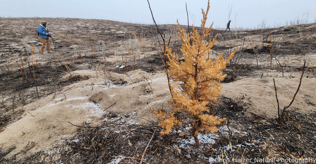 While we were checking on bison, we also briefly explored an area of the sandhills and woodland that was burned in December. It looked like it did a great job killing small cedars in the prairie. That fits into a larger strategy by us and others to expand the burn windows we’re using to deal with cedar tree encroachment. There aren’t enough good burn days in the spring to do what’s needed, so we need to be ready to take advantage of good days whenever they come.