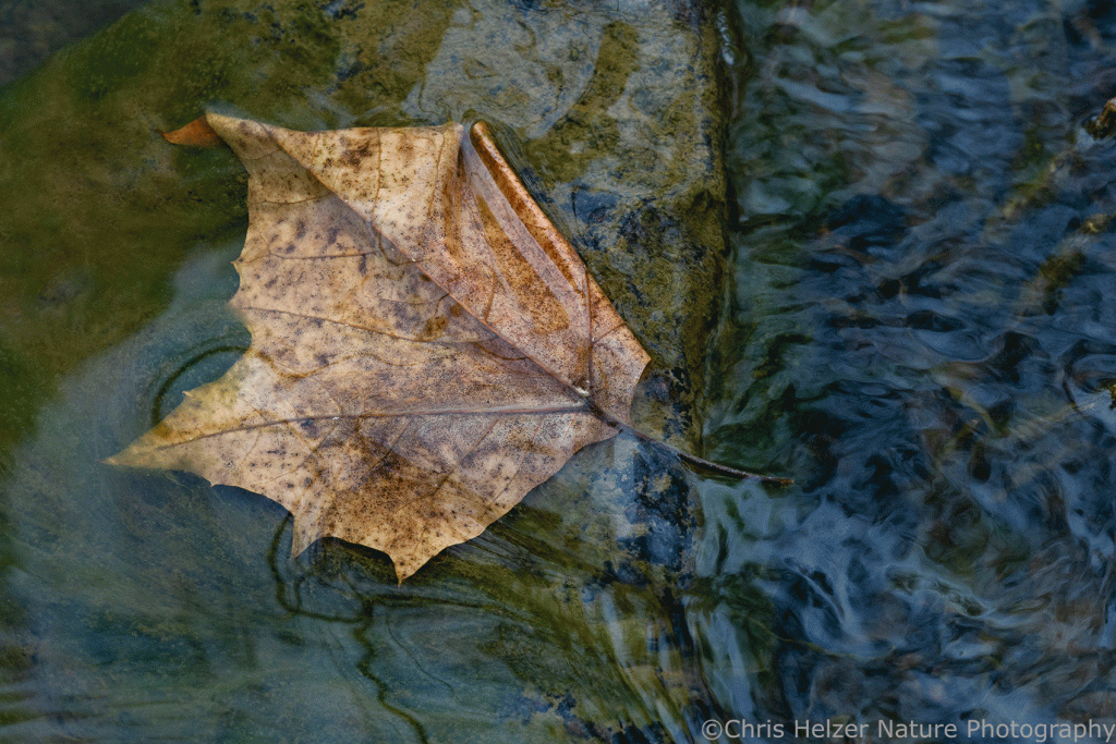 Last weekend, Kim had a 50 mile race at Robber’s Cave State Park in Oklahoma, so I tagged along to hand her snacks and top off her water as she came through aid stations. In between, I wandered the woods a little. It was dark and cloudy most of the day, but brightened up enough in the late afternoon that I did a little photography. Here are three photos of sycamore leaves in a stream that caught my eye.