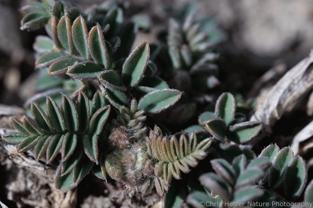 Apart from a couple early-season invasive grasses (smooth brome and Kentucky bluegrass), the prairie plant community was visually dominated by drab-looking dried plants. In some places, sun sedge provided little flashes of green and there were a few tiny annual plant seedlings popping up here and there – especially in patches of bare soil. Stiff goldenrod’s basal leaves still had a little green left in them, and I saw a little yarrow and a few other plants that looked like they were starting to grow. I also visited my favorite patch of buffalo pea (Astragalus crassicarpus) and was pleased to see it starting to put on leaves.