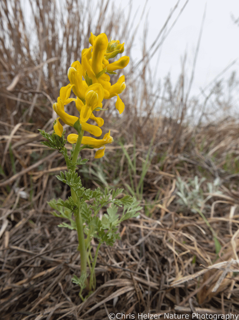 Kim was, of course, correct about the Corydalis. I wandered out and found a few plants to photograph during her next lap. Then I looked online to see what species it might be. I’m pretty sure it’s Corydalis lutea, which is a non-native, but apparently fairly innocuous wildflower found in that part of Kansas. It’s very pretty.